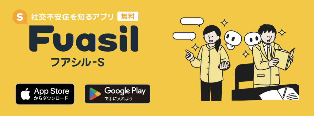社交不安症について知るアプリ『フアシル-S』は、兵庫医科大学精神科神経科学、東北学院大学人間科学部と共同研究にて開発したアプリです。