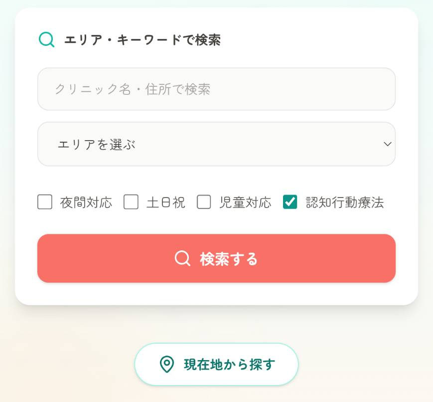 🔍 精神科・心療内科 ナビ|夜間・土日やCBT対応病院を探す